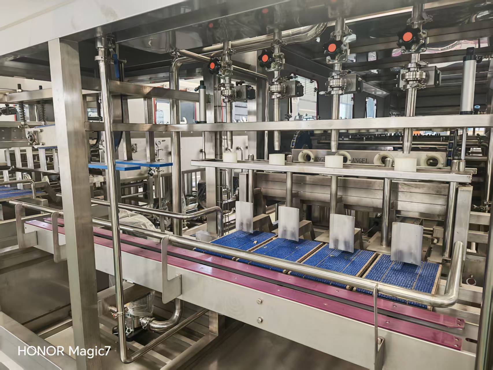 套蓋和壓蓋全過程均在封閉隧道內進行,有效地防止純凈水在灌裝過程中可能發生的二次污染,完全符合衛生標準。